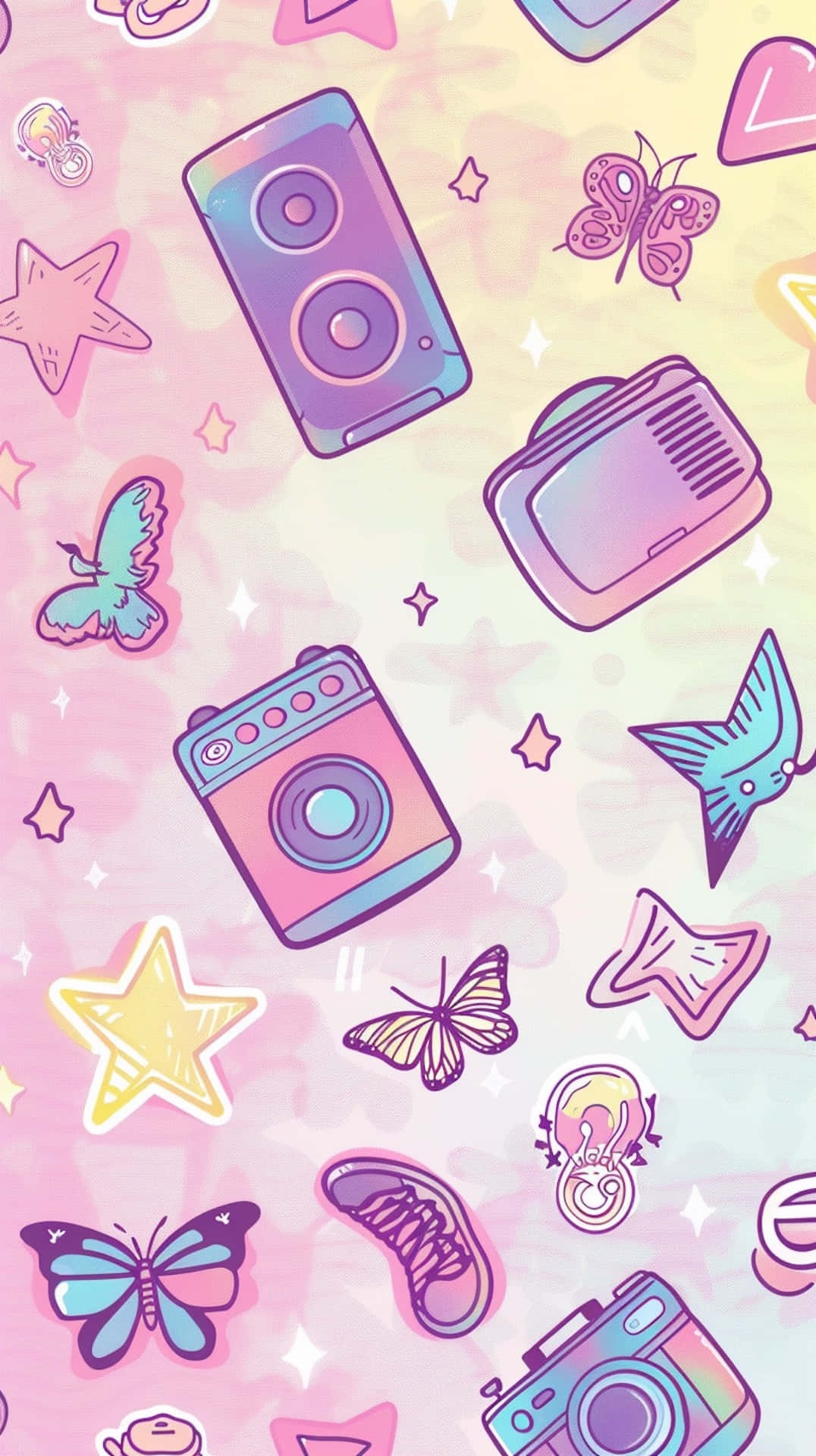 00s Aesthetic Retro Items Pattern Wallpaper -