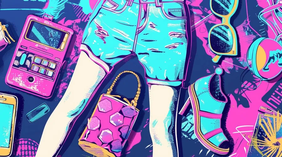 00s Summer Fashionand Tech Illustration Wallpaper -