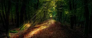 A Path Through A Forest With Autumn Leaves Wallpaper -
