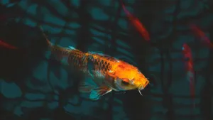 A Fish Swimming In A Dark Aquarium Wallpaper -