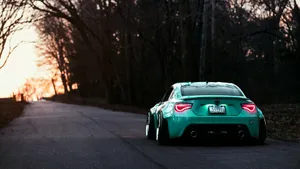 A Toyota 86 Parked On A Street With A Graffiti On It Wallpaper -