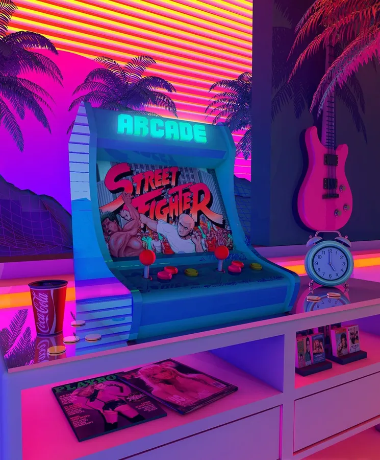 80s Retro Arcade Street Fighter Wallpaper