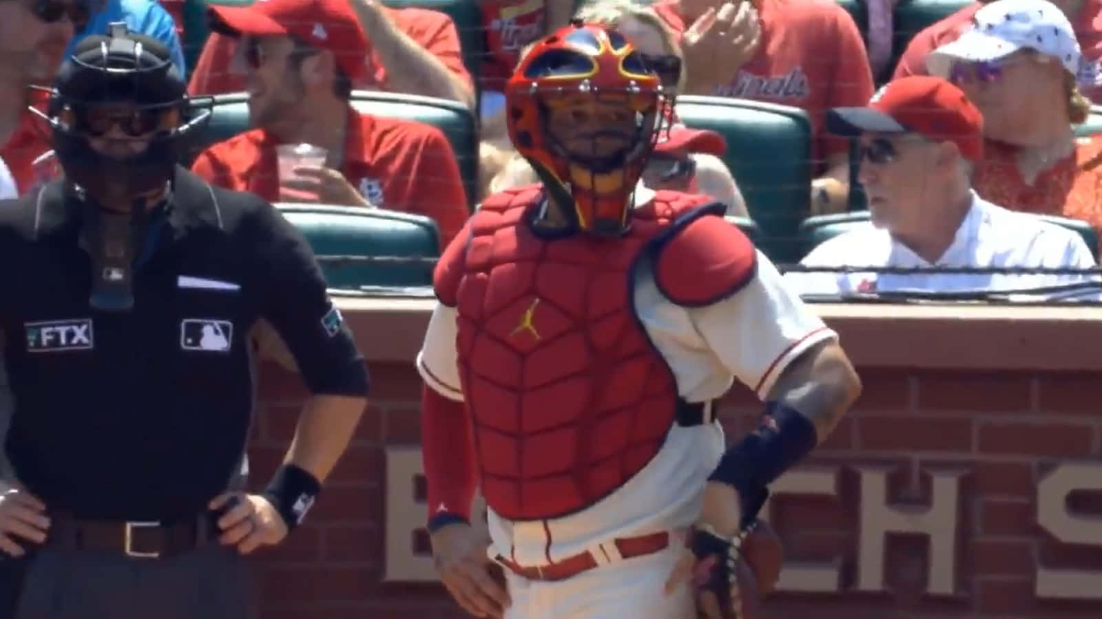 Yadier Molina Reacts To A Home Run Hit By His St. Louis Cardinals. Wallpaper -