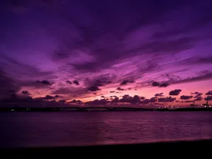 Blue And Purple Sunset With Calm Waters Wallpaper -