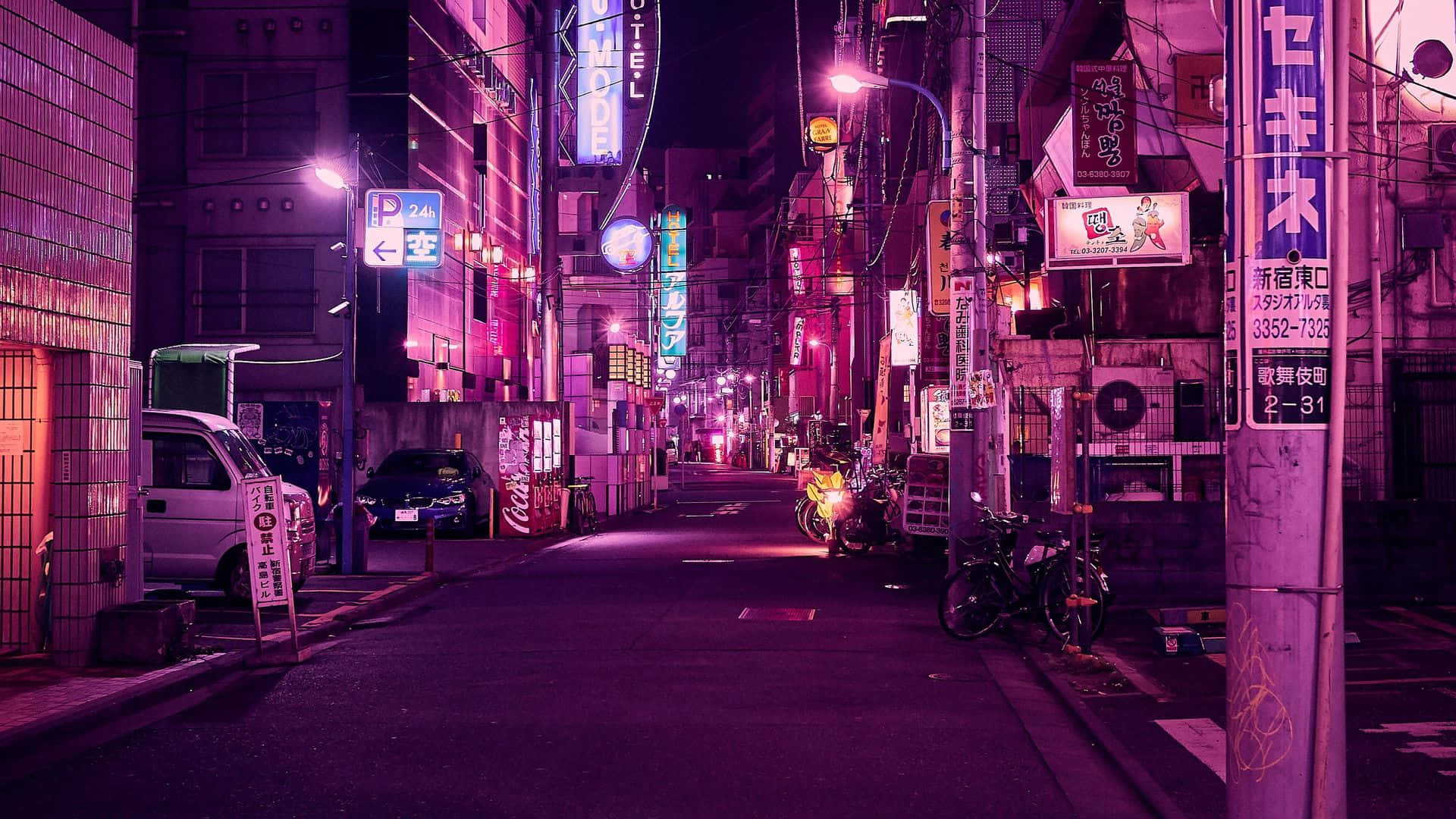 A Street In Tokyo At Night With Neon Lights Wallpaper -