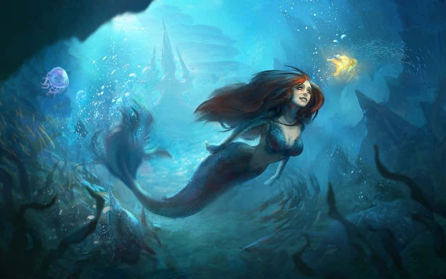 "a Beautiful Mermaid Swimming In An Underwater Paradise." Wallpaper -