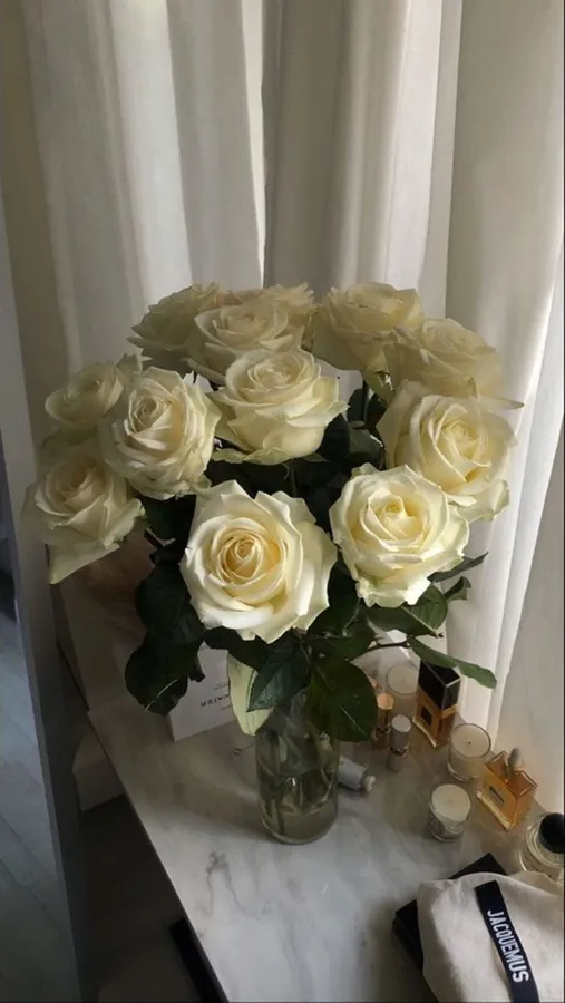 White Roses Aesthetic Chanel Vase Wallpaper -