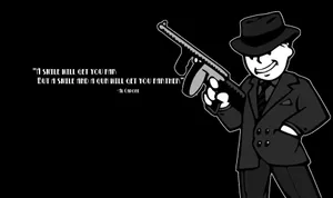 Vault Boy Man In Suit Holding Gun Wallpaper -