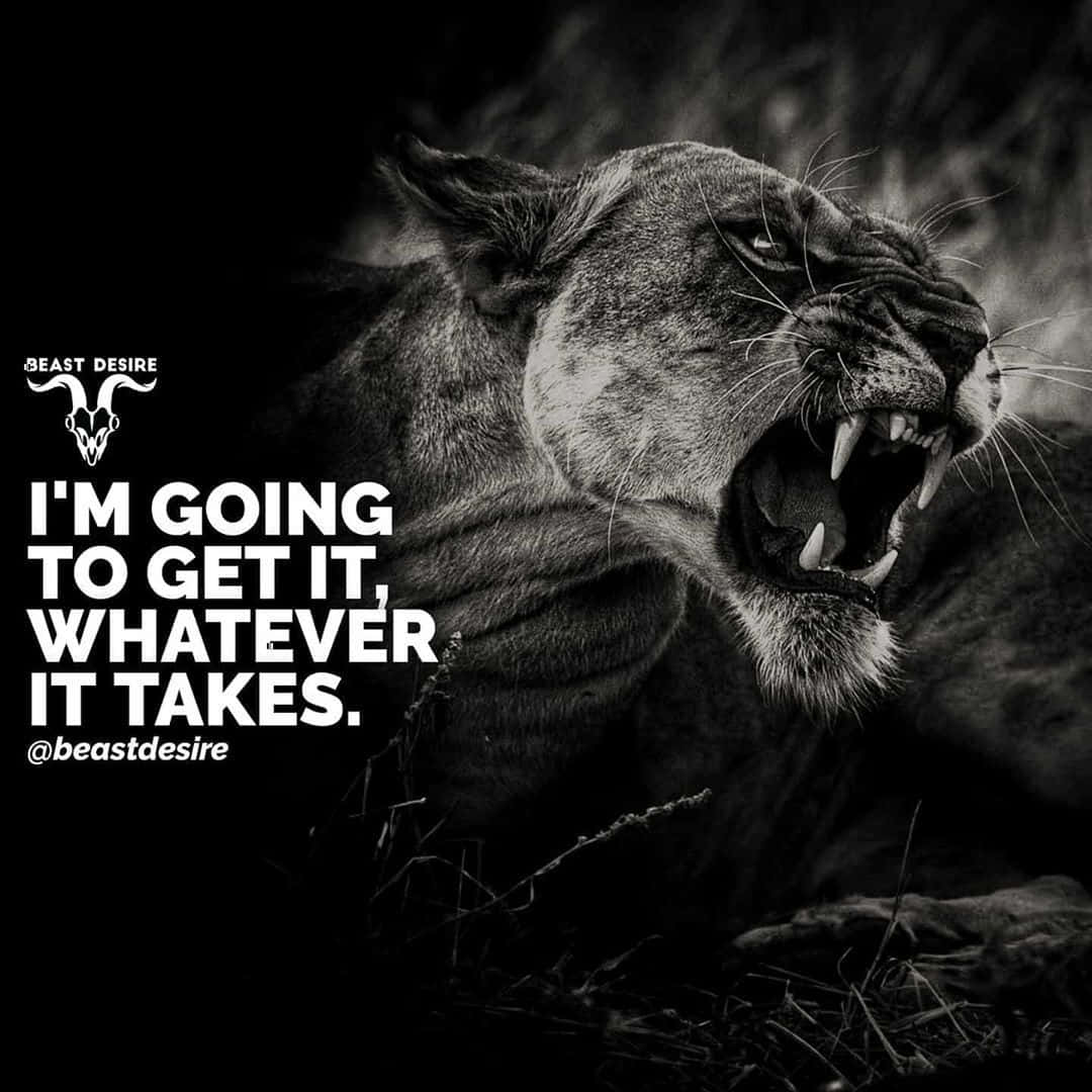 Related A Black And White Photo Of A Lion With The Quote I’m Going To Get It Whatever It Takes Wallpaper