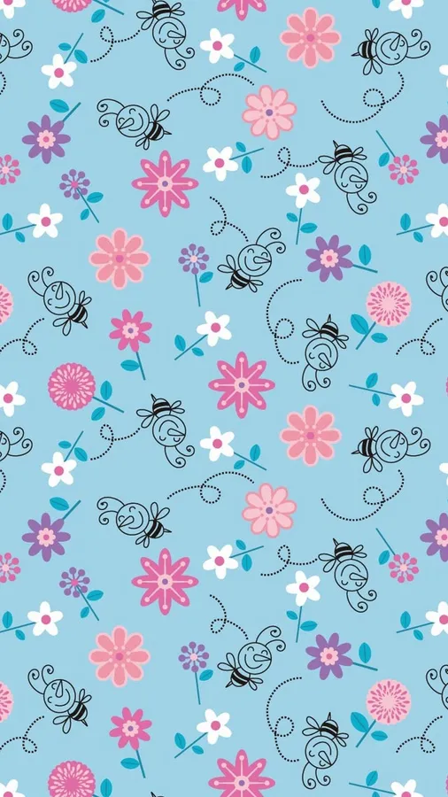 A Pink And Blue Floral Pattern Wallpaper -