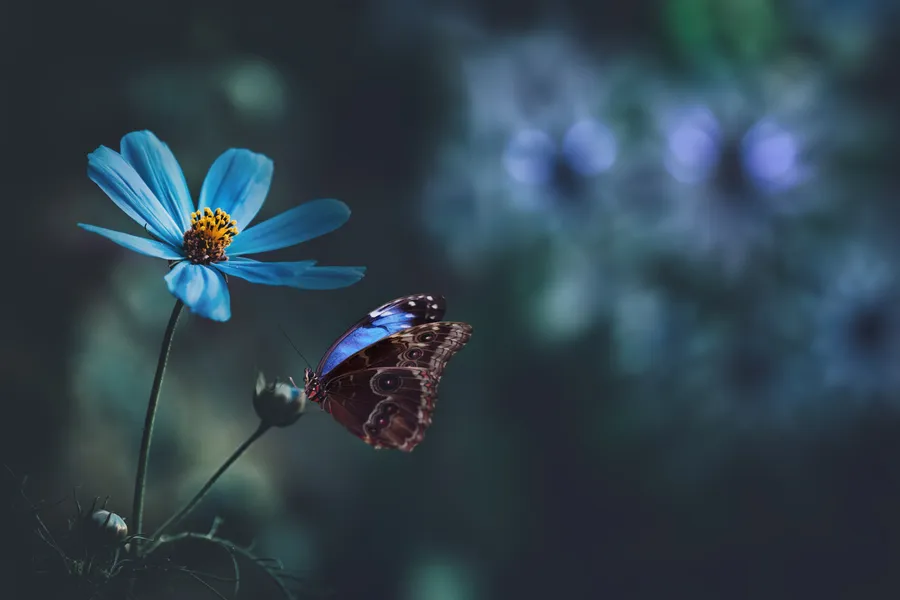 Blue Flower Desktop Butterfly Wallpaper -
