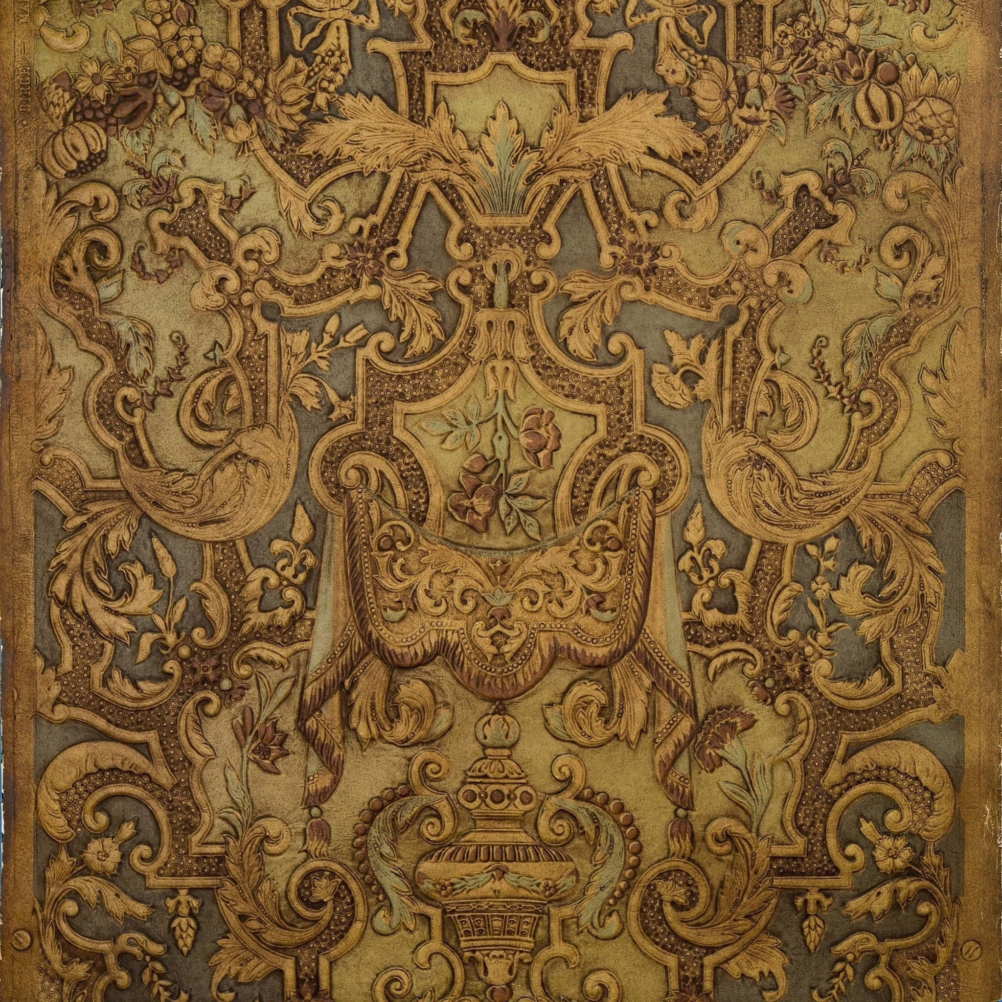 A Brown And Gold Tapestry With Ornate Designs Wallpaper