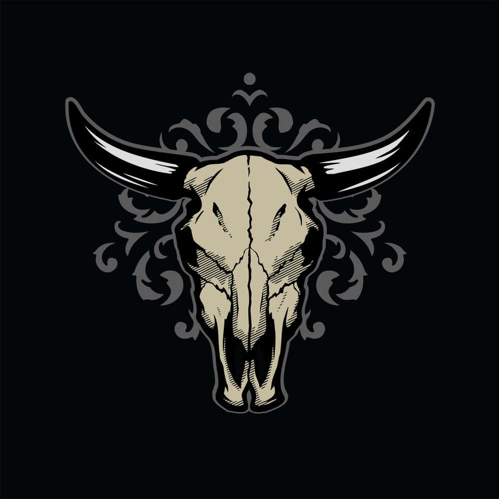 A Bull Skull With Horns On A Black Background Wallpaper -