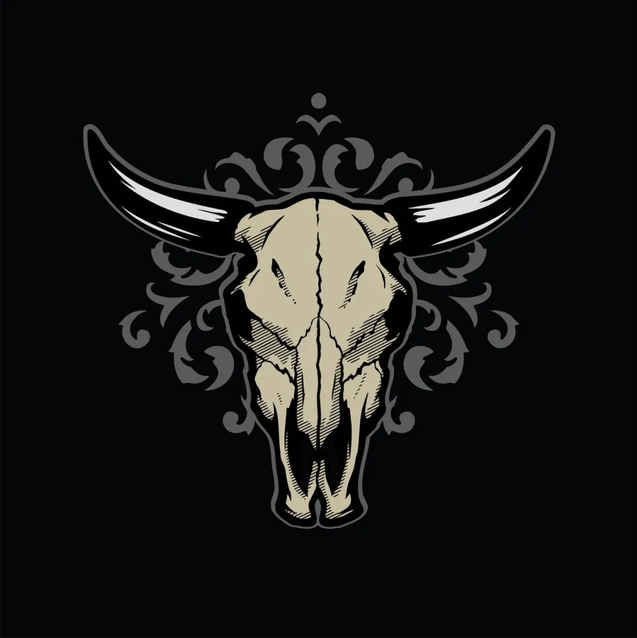 Related A Bull Skull With Horns On A Black Background Wallpaper