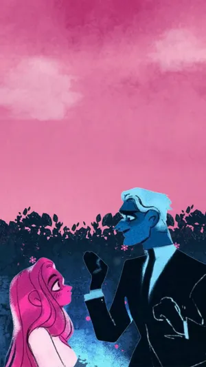 A Couple Of Cartoon Characters Kissing Wallpaper -