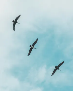 Majestic Birds Soar Through A Blue Cloudy Sky Wallpaper -