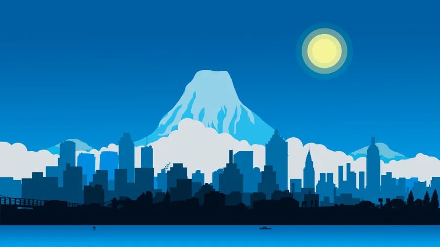 Related A Cityscape With A Sun And Clouds Wallpaper