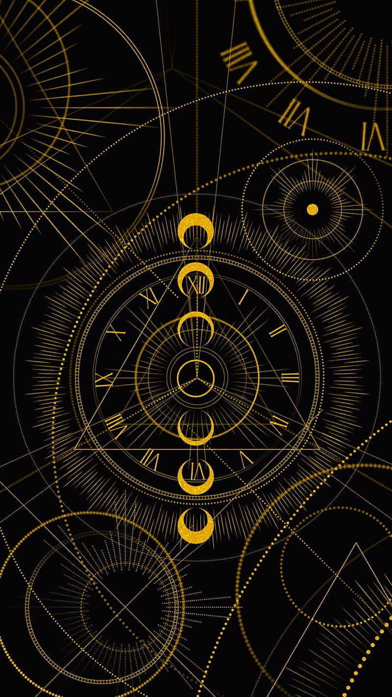A Clock With Gold Lines On A Black Background Wallpaper