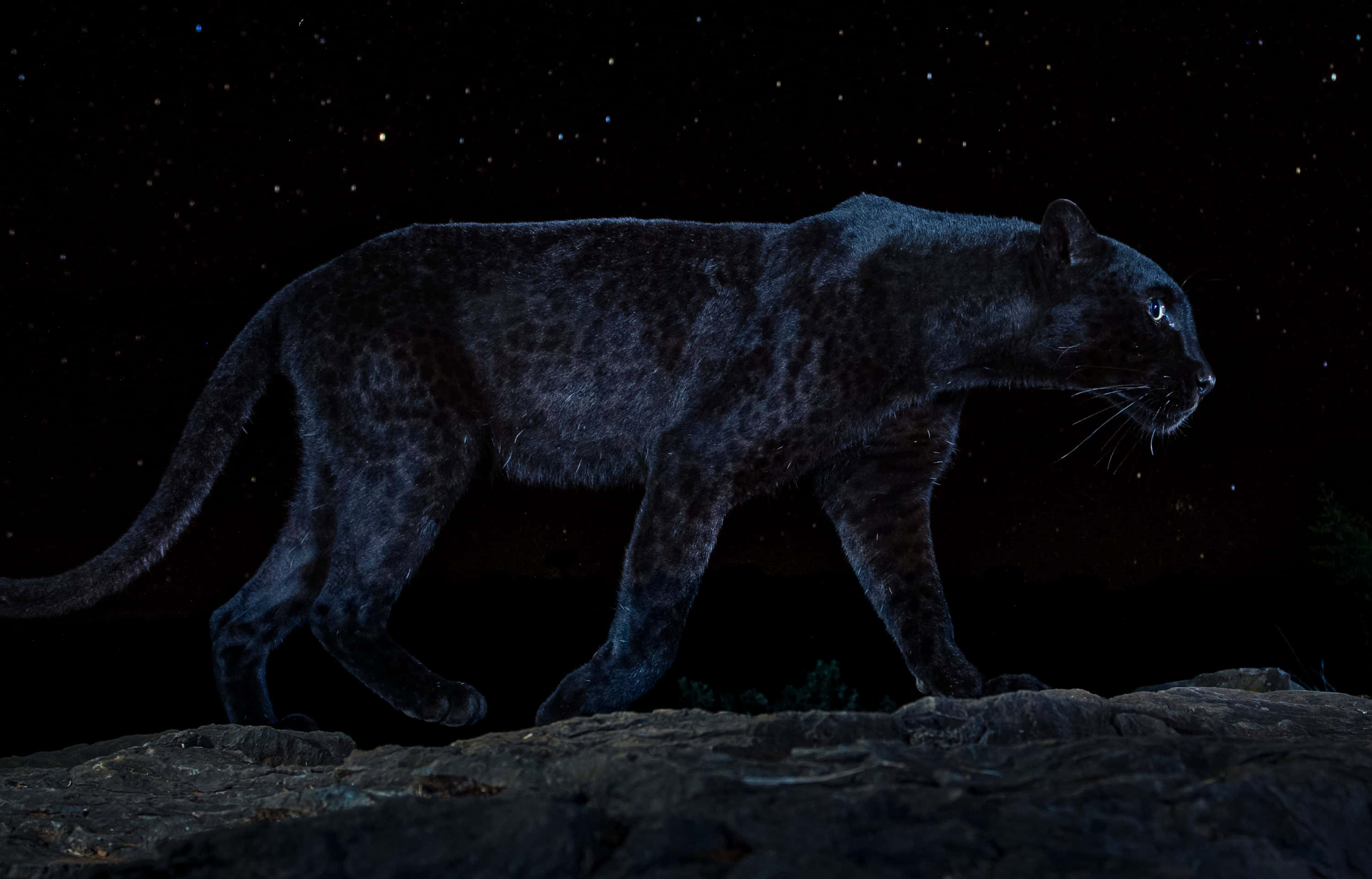 "the Majestic Black Leopard Defies The Darkness." Wallpaper -