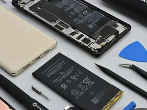A Phone With Its Internal Parts Exposed. Wallpaper -