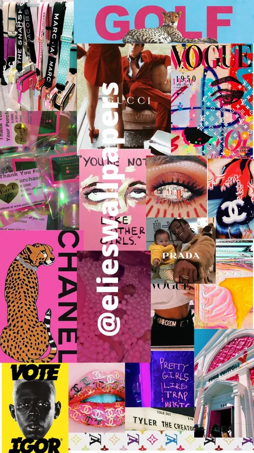 A Collage Of Various Images Of Chanel, Vogue, And Other Magazines Wallpaper