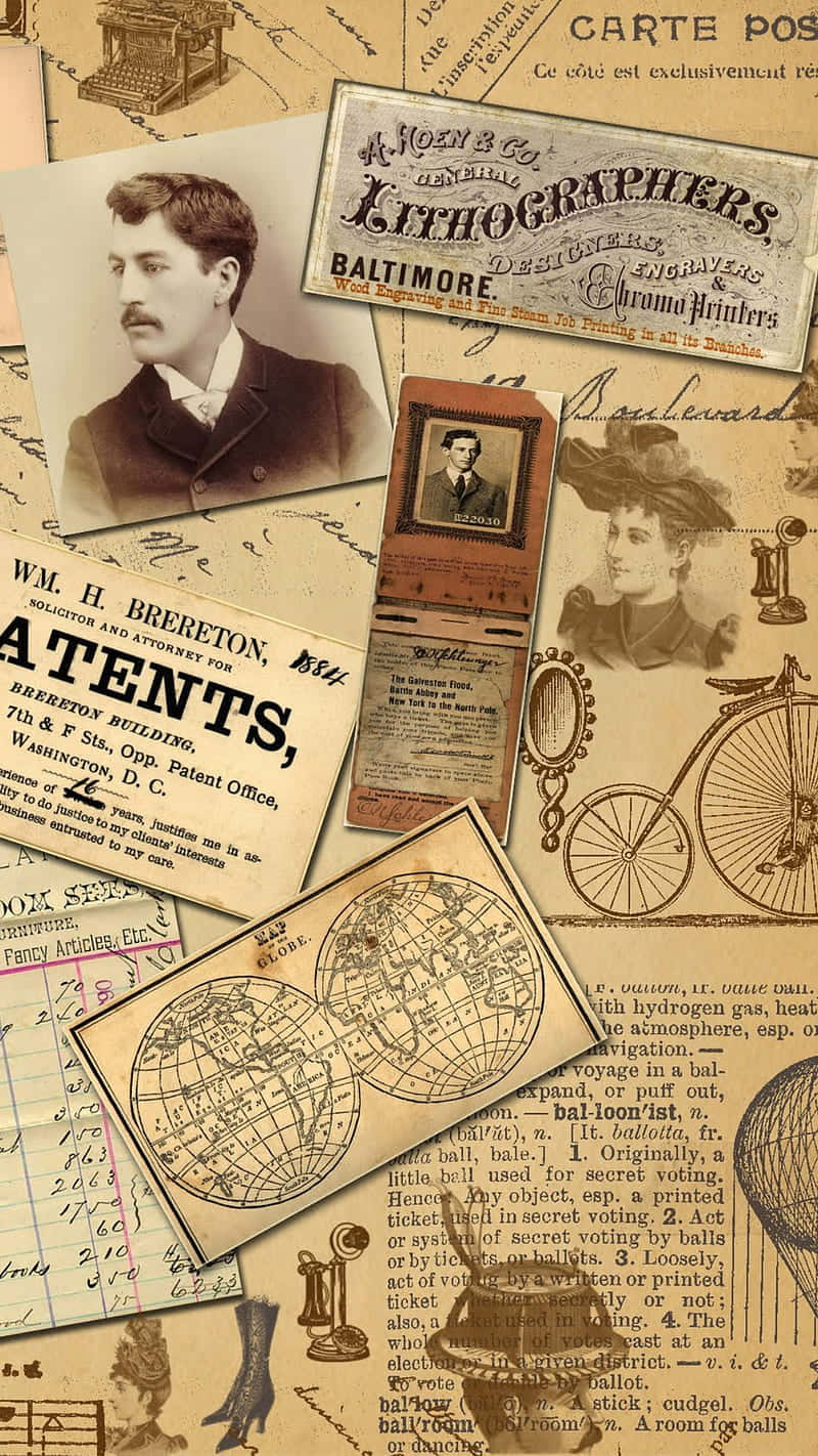 Vintage Newspaper With Many Different Pictures Wallpaper -
