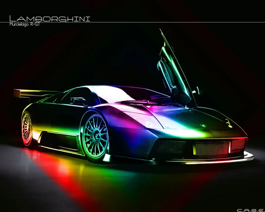 A Colorful Sports Car With A Rainbow Light Shining On It Wallpaper
