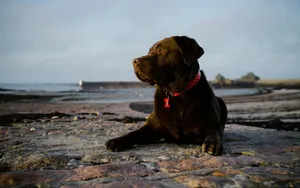Chocolate Lab Puppy Covered In Snow Wallpaper -