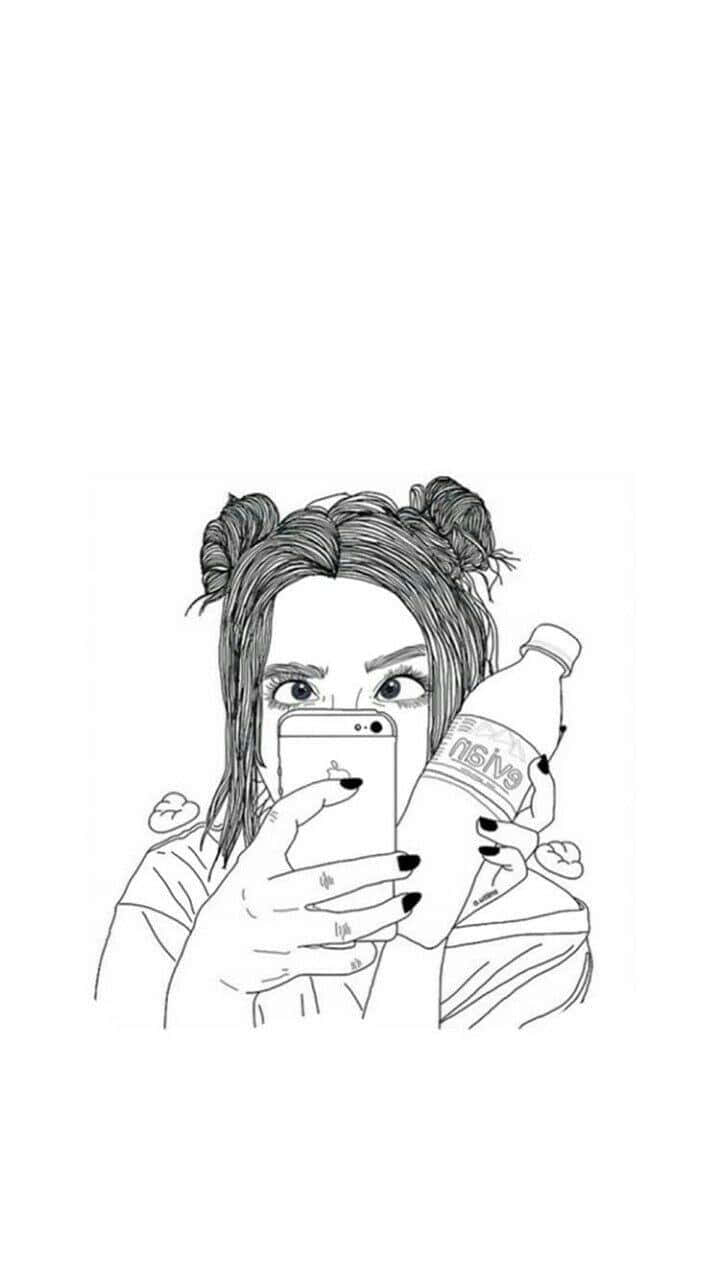 A Drawing Of A Girl Holding A Bottle Of Water Wallpaper -