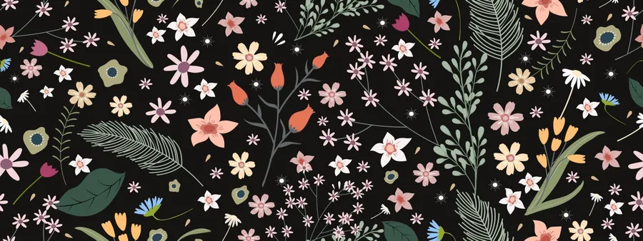 Related A Floral Pattern On A Black Background Wallpaper