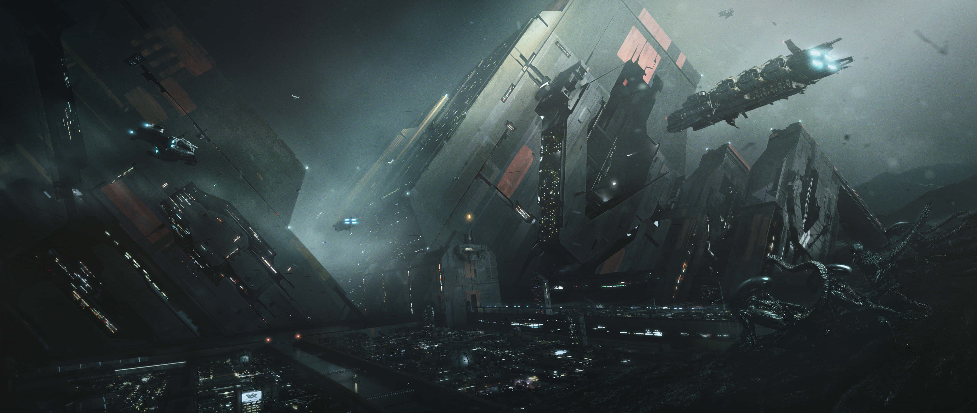 Related A Futuristic City With A Large Spaceship Wallpaper