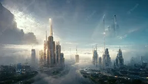 Related A Futuristic City With A View Of The Sky Wallpaper