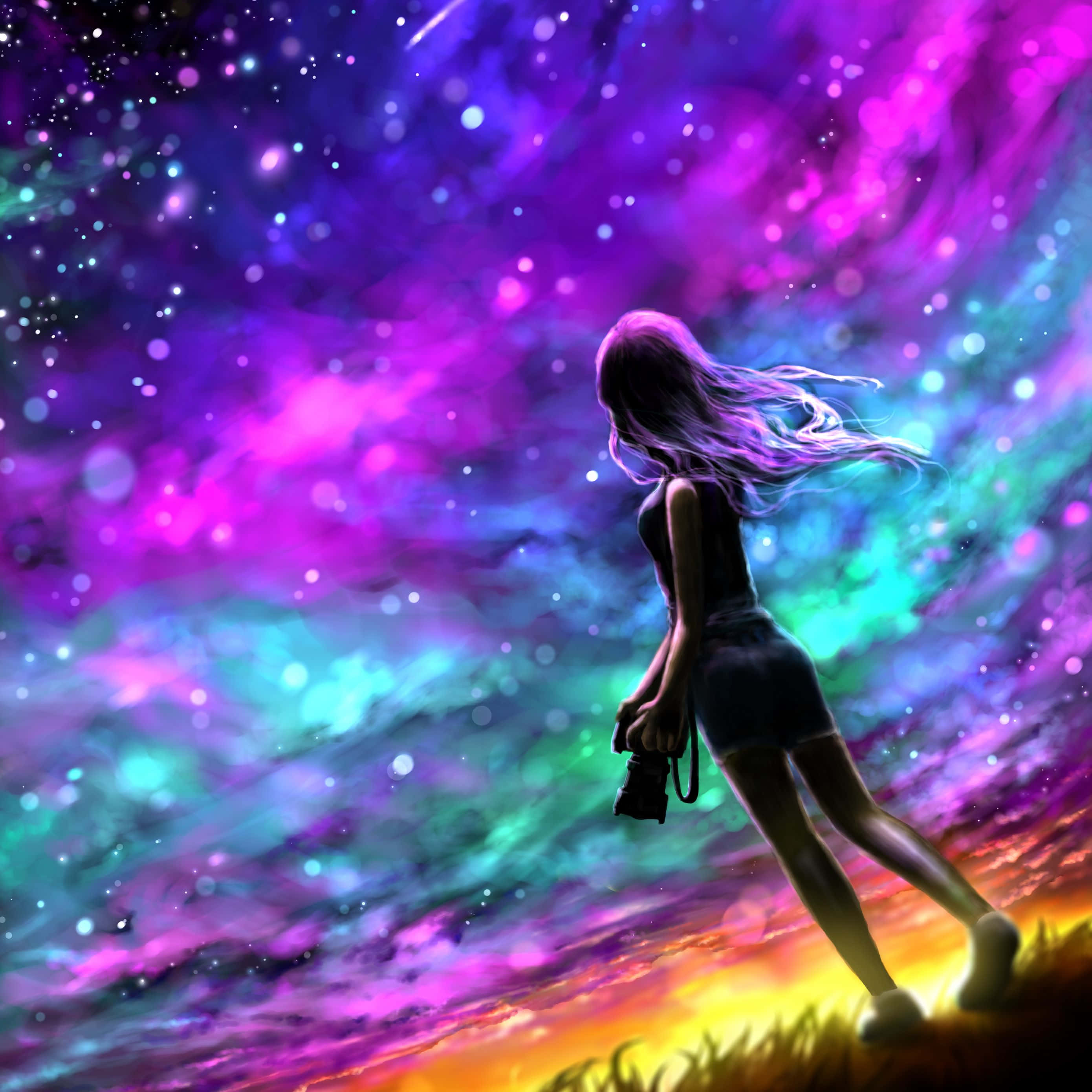 Anime Girl Colorful Cloudy Skies Ipad Wallpaper -