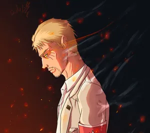 Two Anime Characters Standing In Front Of A Fire Wallpaper -