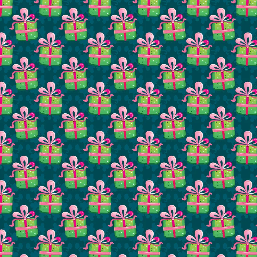 A Green And Pink Pattern With Presents On It -