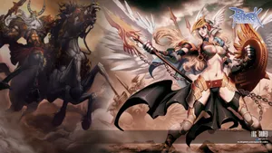 A Group Of Characters With Swords And Wings Wallpaper