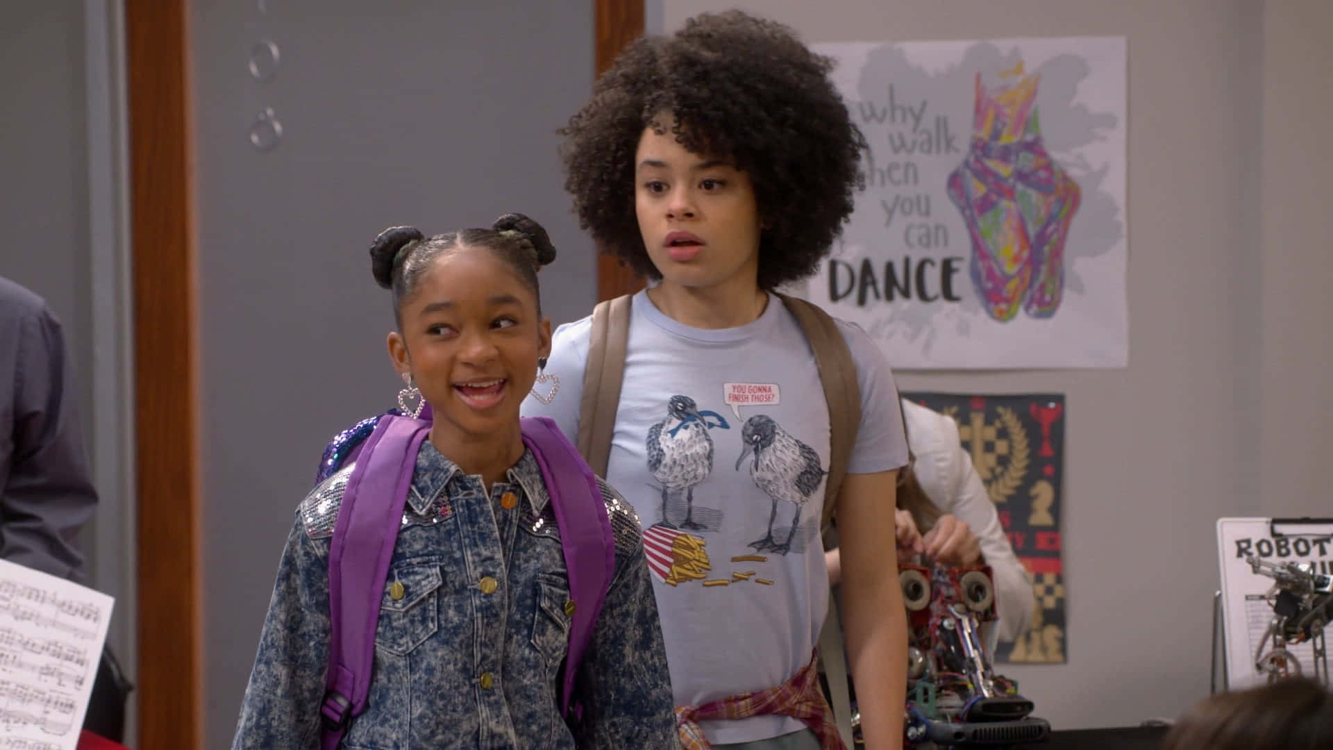 Two Girls With Afros Standing Next To Each Other Wallpaper -