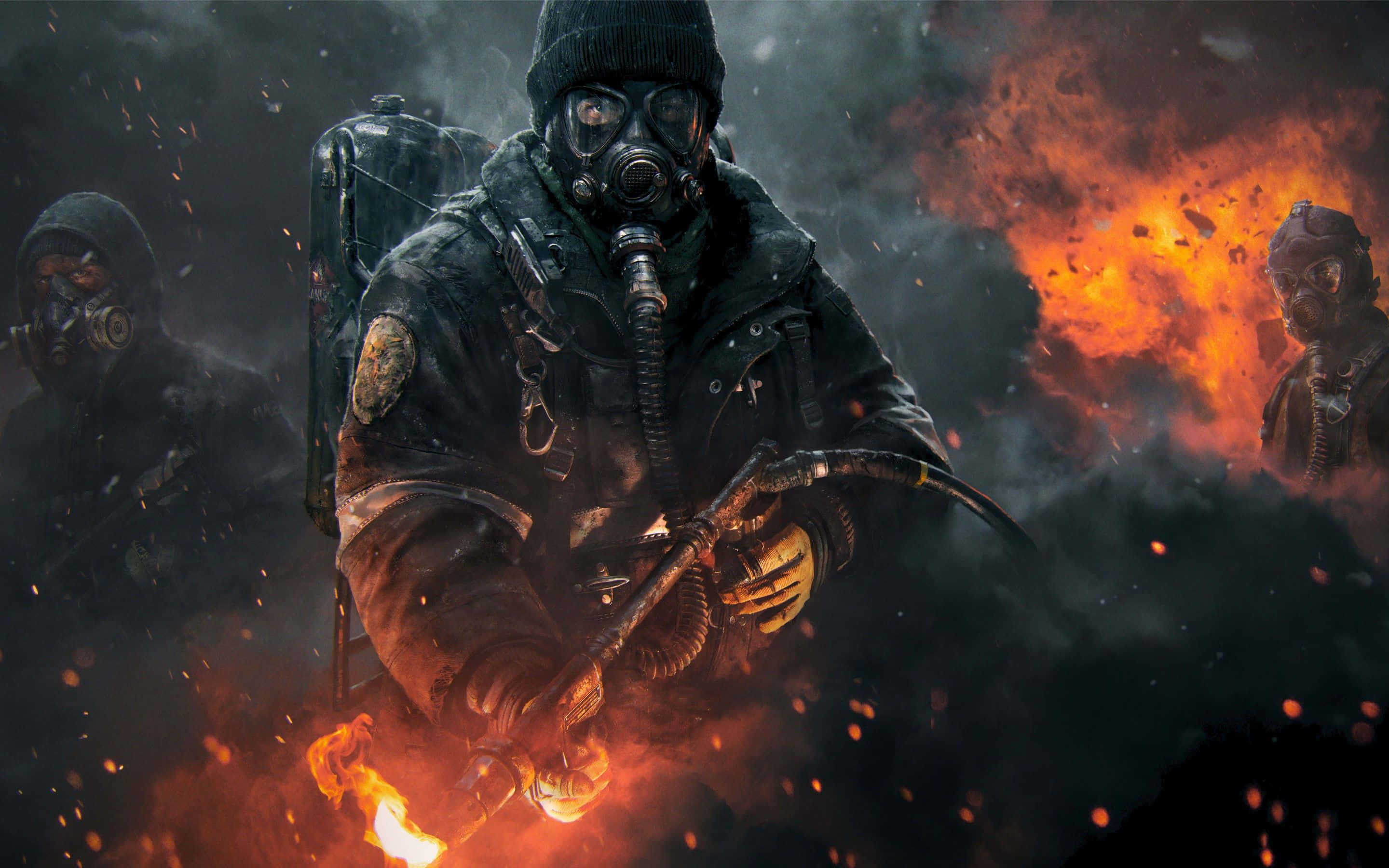 A Group Of Soldiers In Gas Masks And Fire Wallpaper