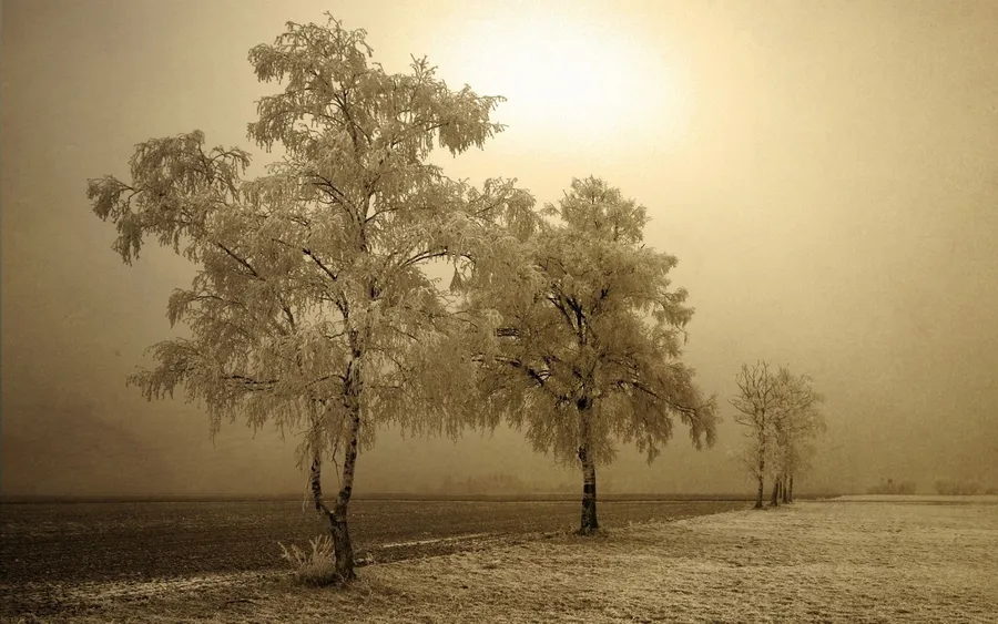 Old Winter White Trees Wallpaper -