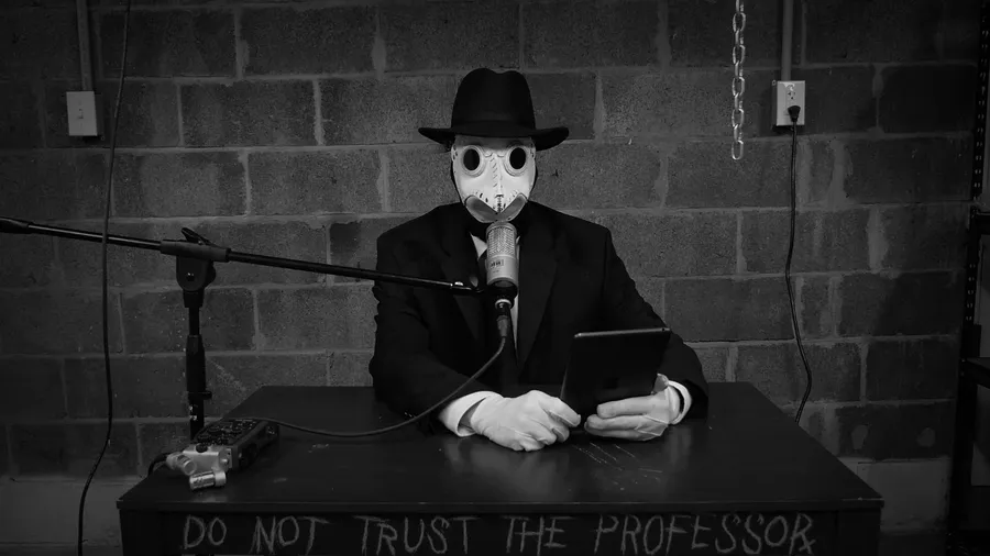 Related A Man In A Mask Sitting At A Desk Wallpaper