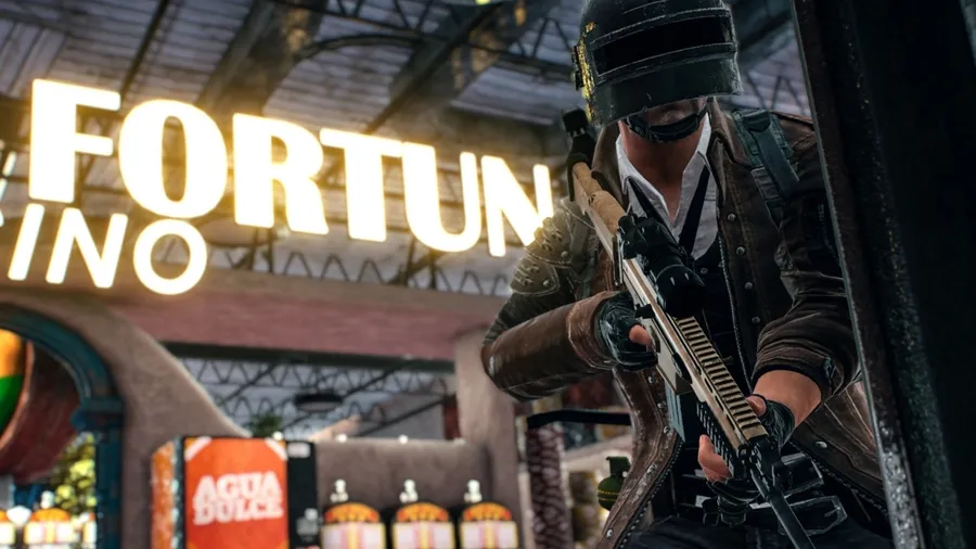 A Man Is Holding A Gun In Front Of A Casino Wallpaper