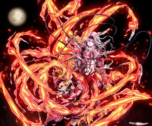 Fire And Ice Clash As Demon Slayer Kokushibo Unleashes His Two Swords Wallpaper