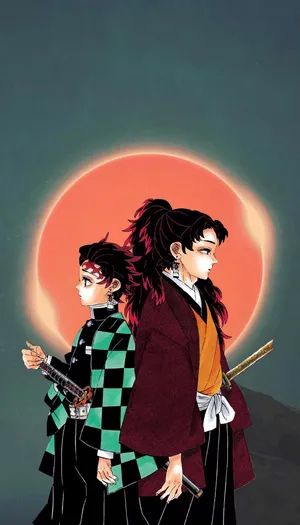 A Fearsome Face-off In Demon Slayer Between The Powerful Demon Kokushibo And Tanjiro. Wallpaper -