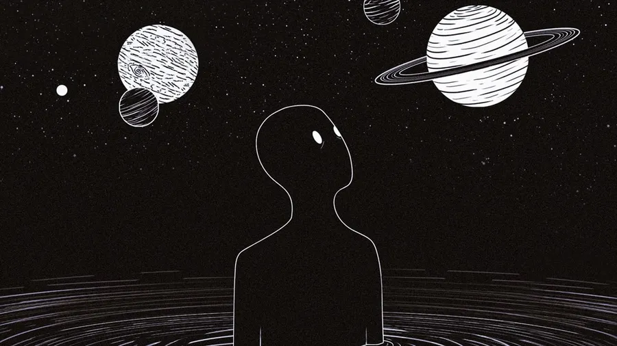 Related A Man Is Standing In The Water With Planets Around Him Wallpaper