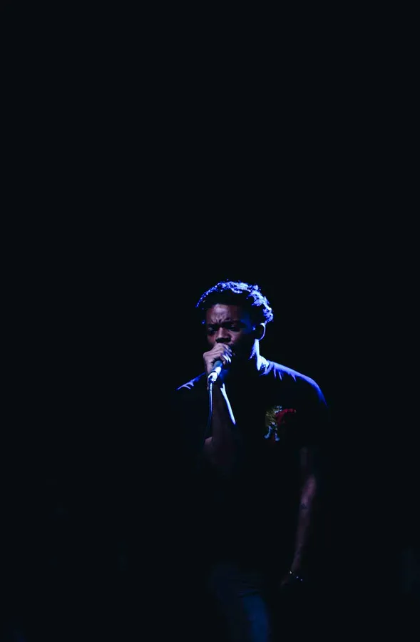 Related A Man Singing Into A Microphone In The Dark Wallpaper