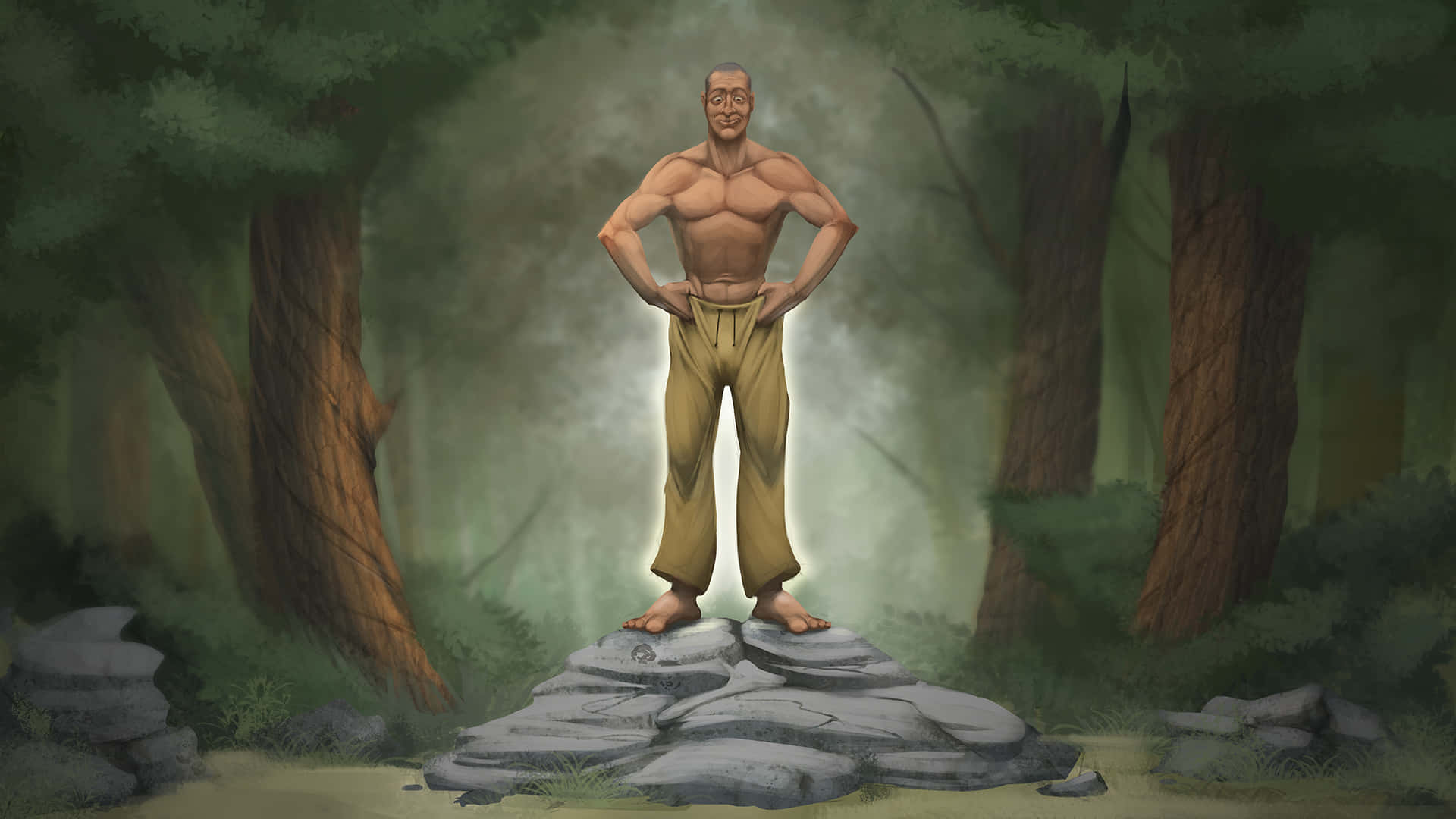 A Man Standing On Top Of A Rock In The Forest Wallpaper