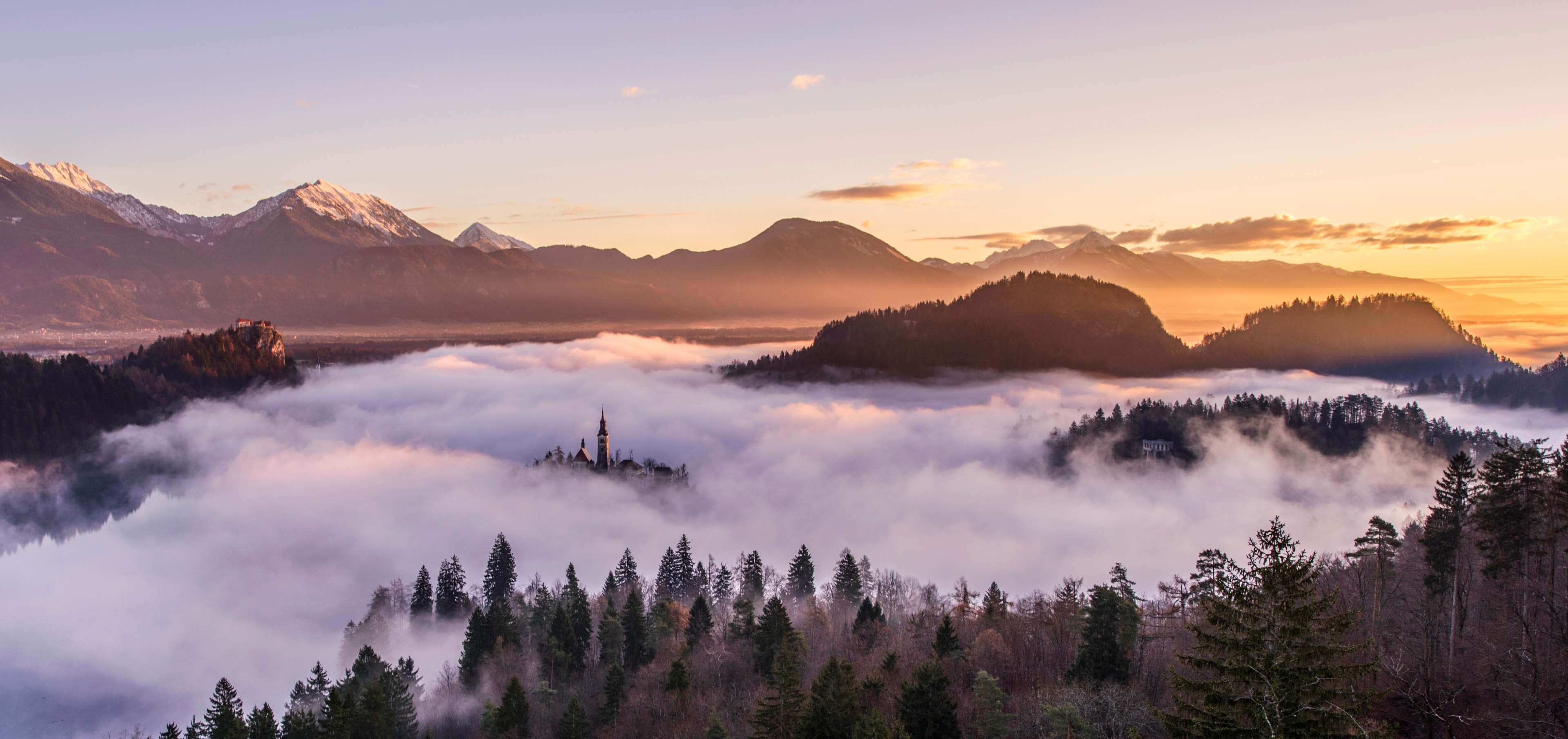 Waters Surrounding Mountains As A Panoramic Desktop Wallpaper -