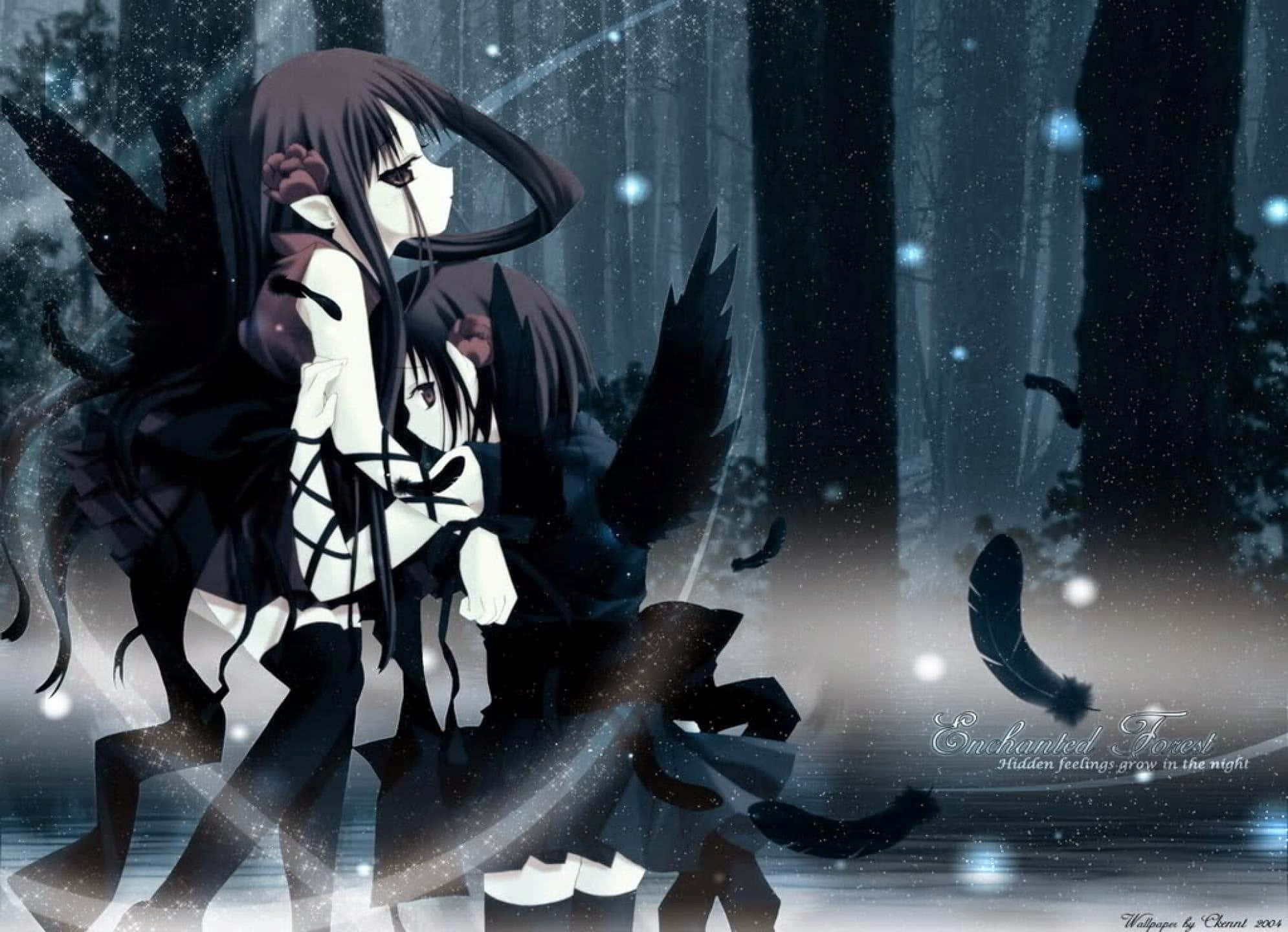 An Enigmatic Dark Anime Girl In A Dreamlike Setting Wallpaper -