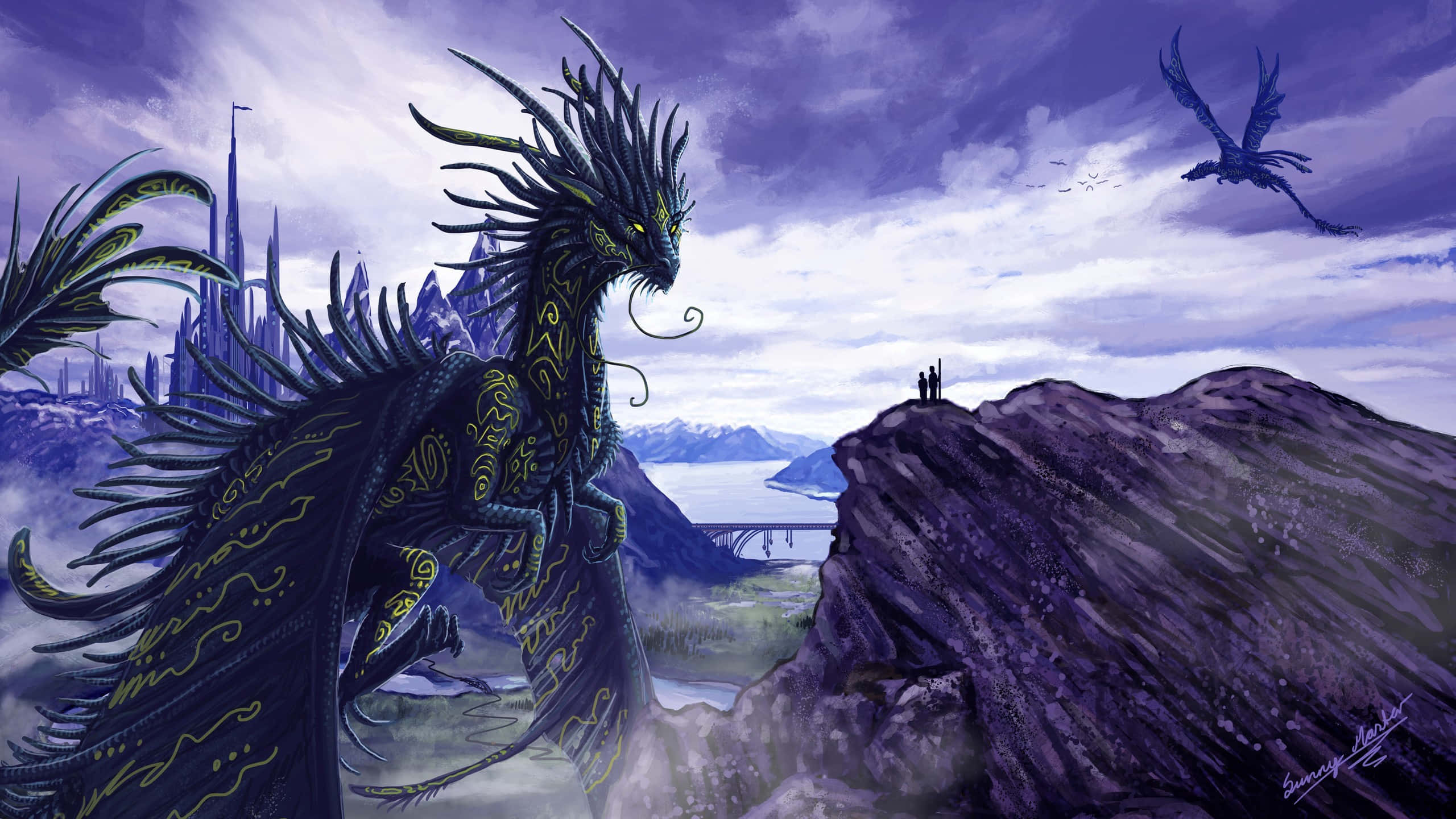 A Mystical Dragon Looms Over The Horizon Wallpaper -