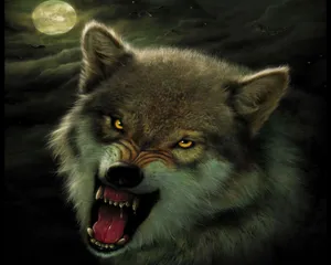 A Mystic Wolf Under The Twilight Moon Wallpaper -
